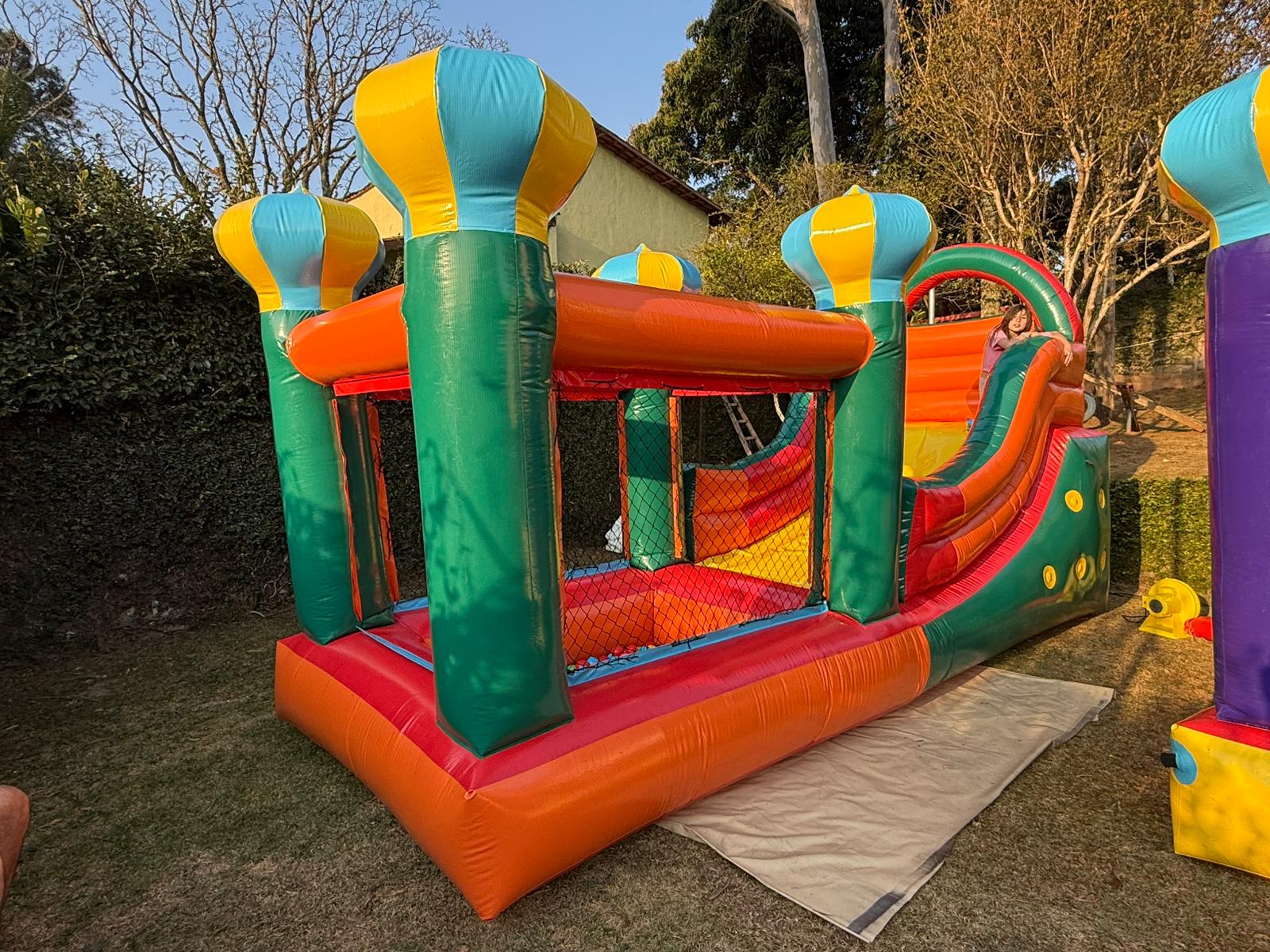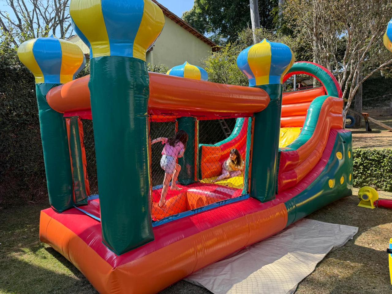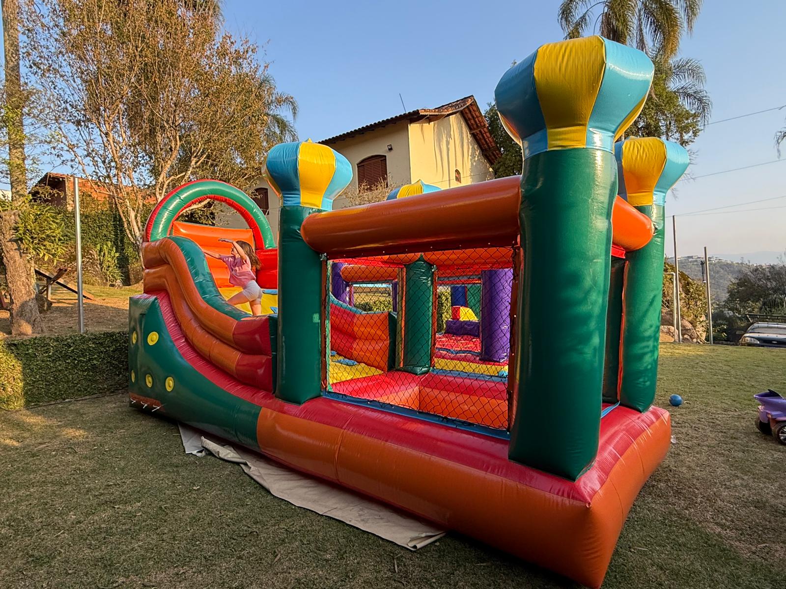 Diversão garantida para os pequenos com segurança e muita energia! OMini Tobogã Inflável com Piscina é perfeito para eventos, escolas, festas ou até mesmo para espaços de recreação em casa. Compacto, colorido e fácil de montar!